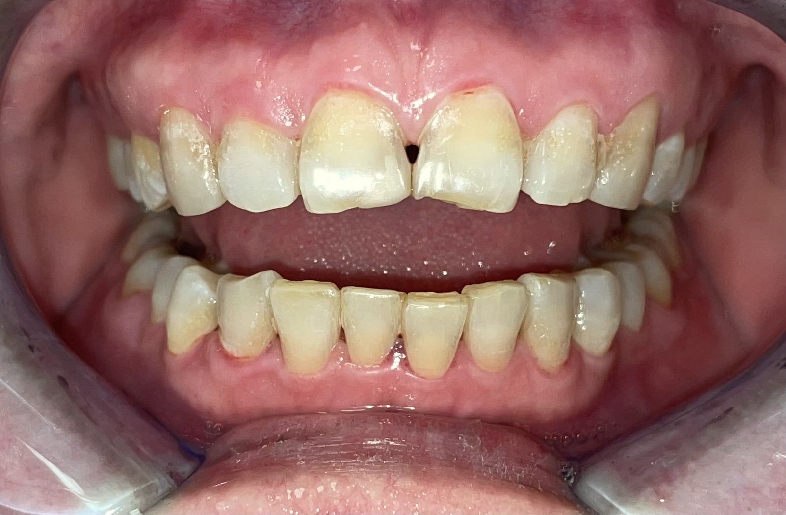 BEFORE: General spacing closing by esthetic composite fillings