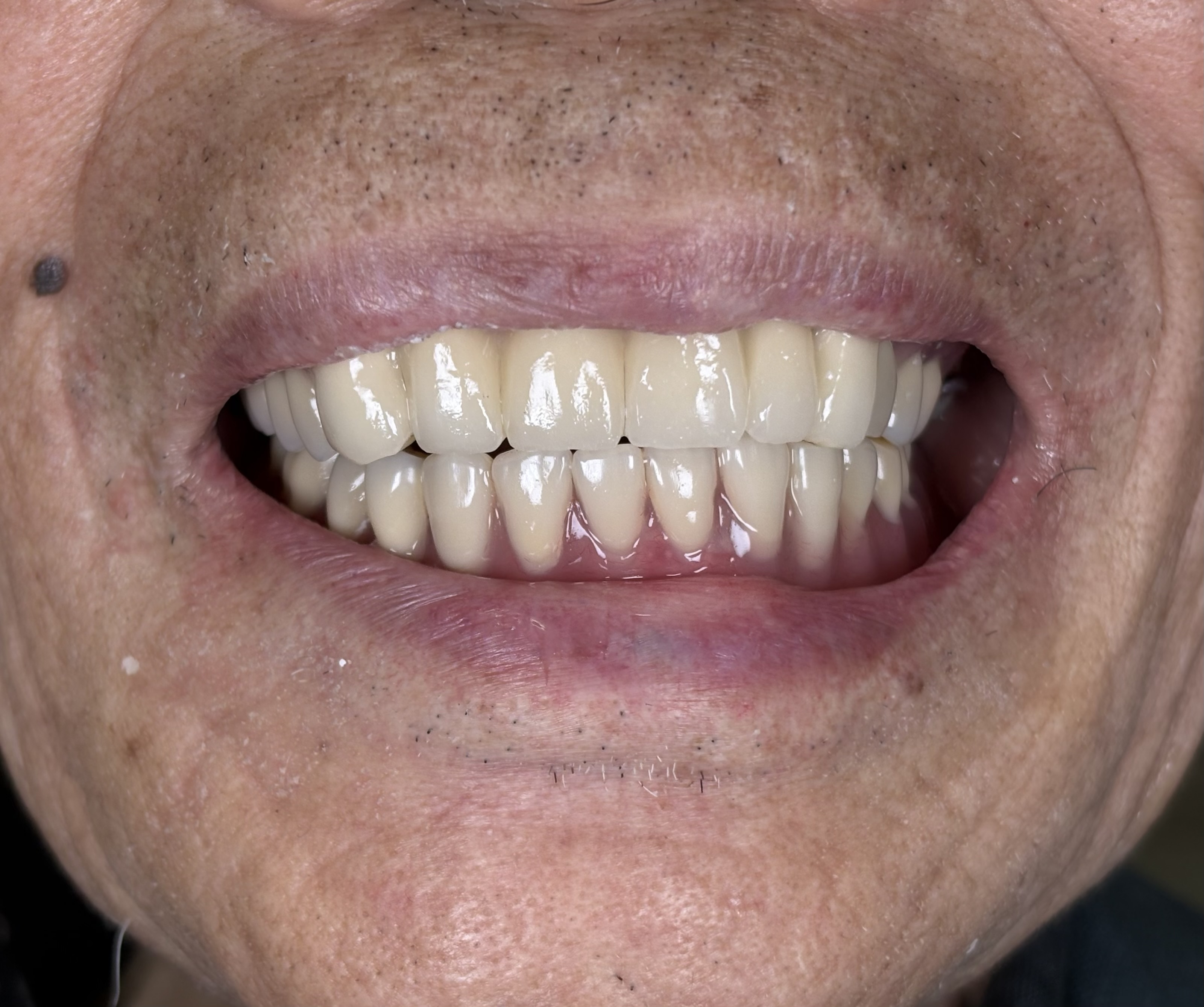 AFTER: Full mouth restoration for patient missing multiple teeth and a very challenging bite