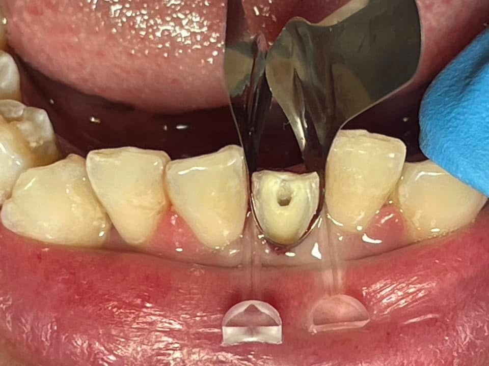 BEFORE: Broken tooth restoration with root canal treatment and esthetic composite build up in one day